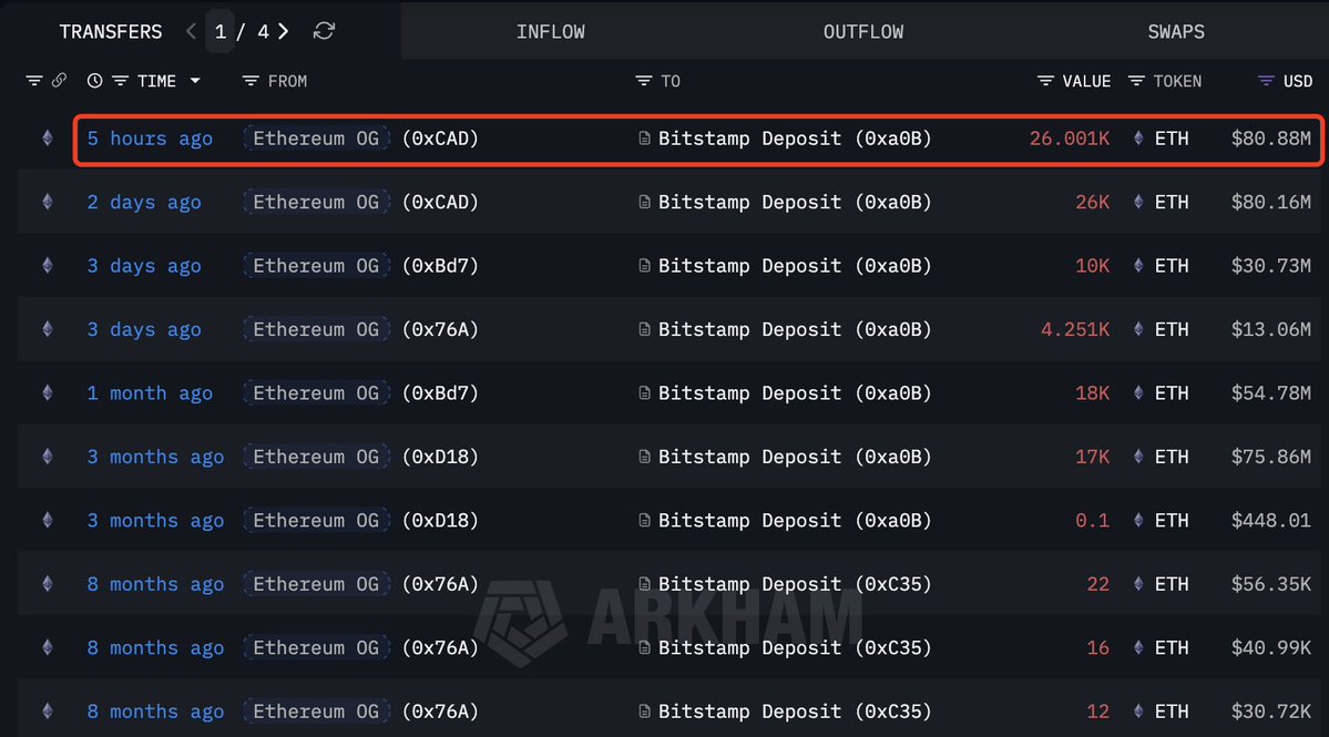一位#EthereumOG在市场崩盘期间醒来,卖掉了两个钱包(0x660c和0x6742)中剩余的8,691 $ETH($20.1M)。