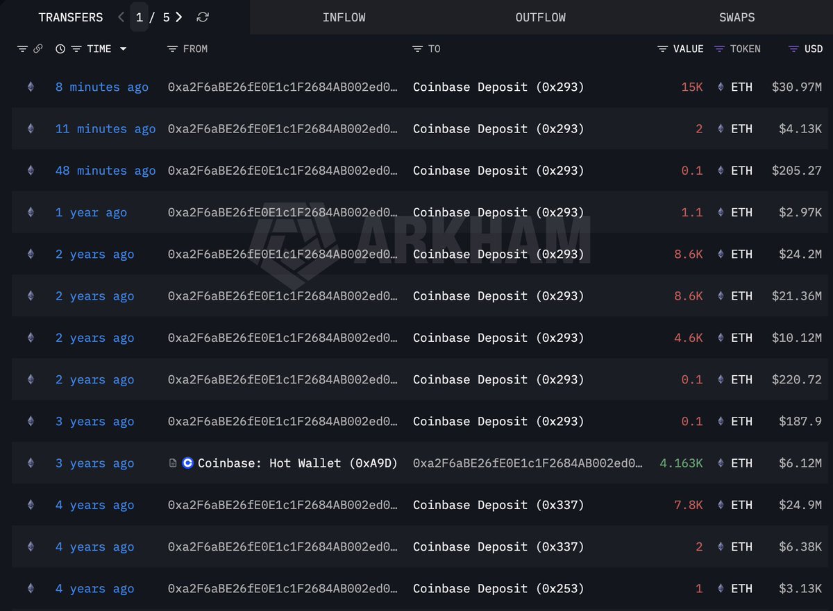 一位 #EthereumOG (0xa2F6) 刚刚卖出了15,002 $ETH($30.97M)!
