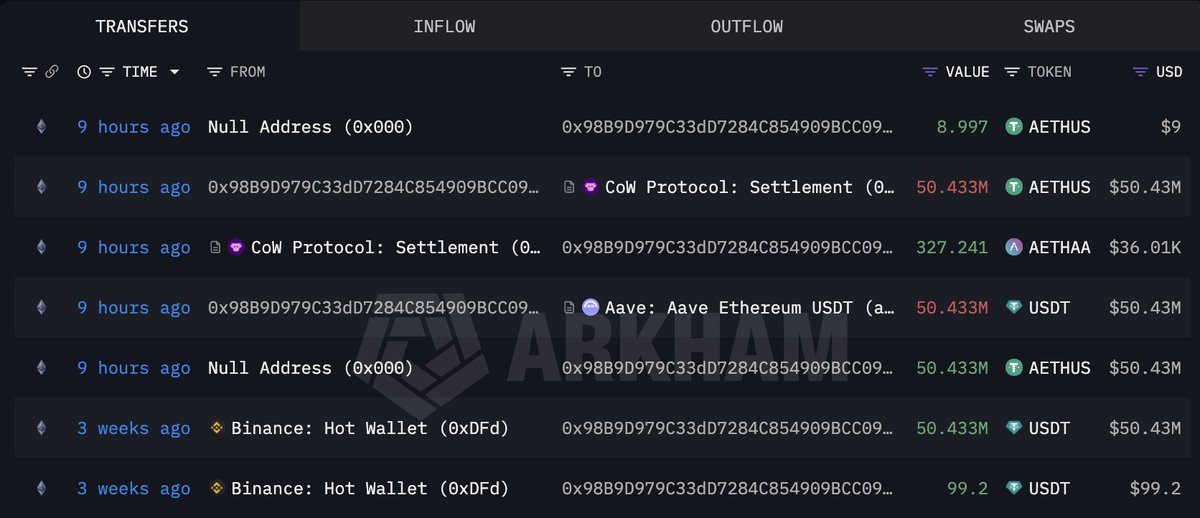 将50.43M aEthUSDT兑换为仅327 aEthAAVE(36K美元)的人可能实际上是Garrett Jin(#BitcoinOG1011short)!👀