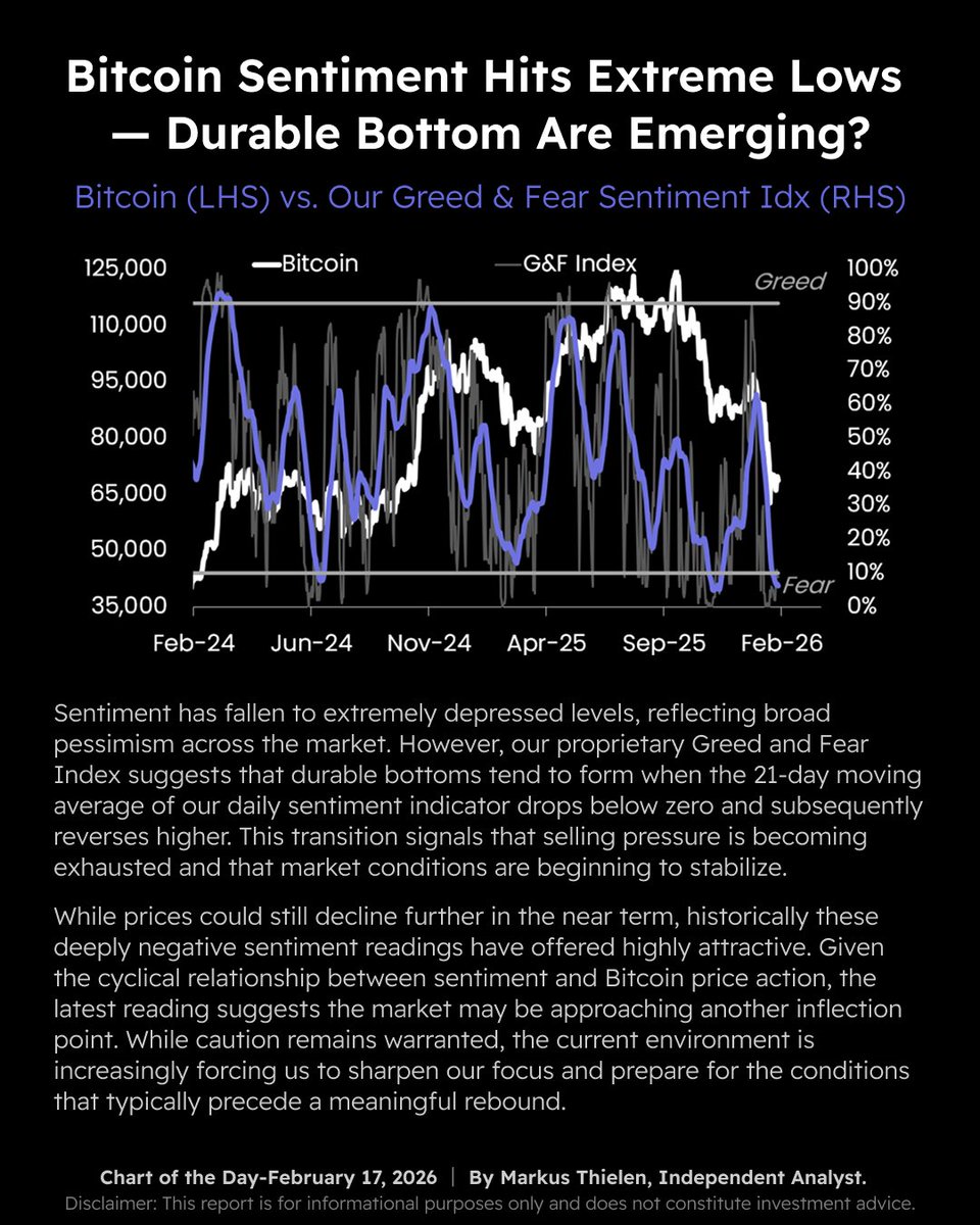比特币情绪触及极端低点 — 持久底部正在形成?