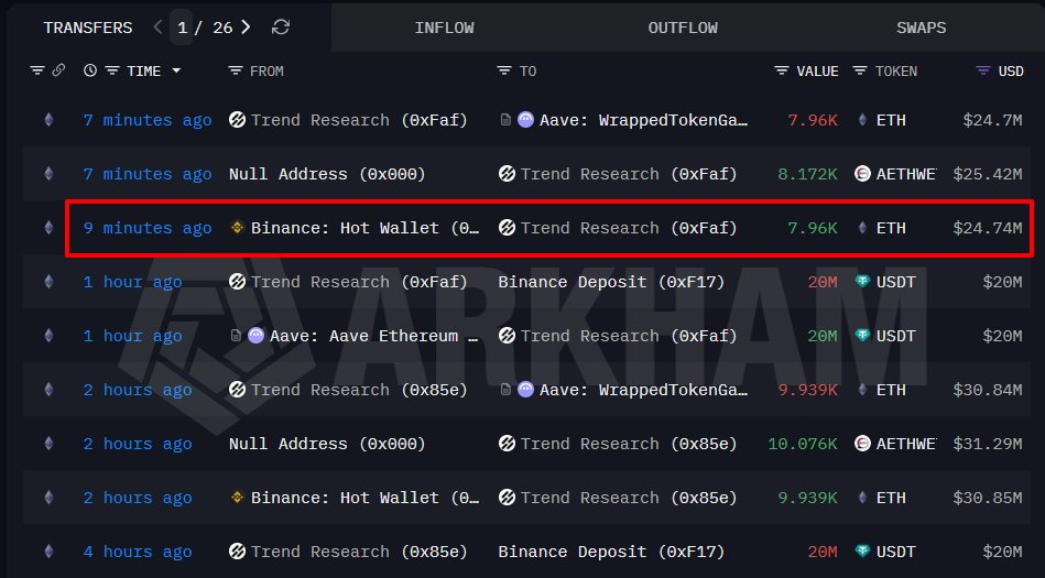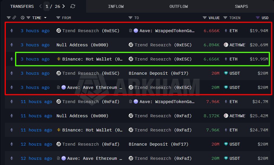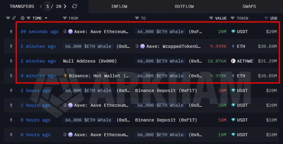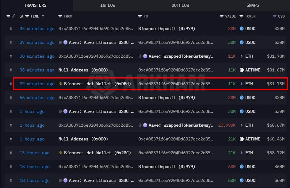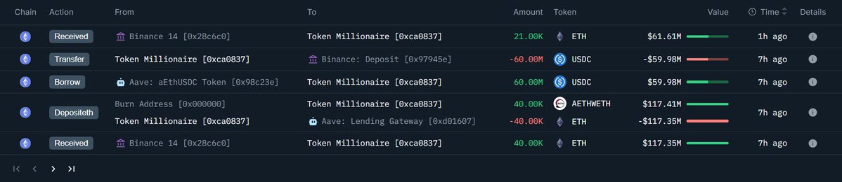 他创建了一个新钱包,从#Binance提取了6.1万枚$ETH(1.743亿美元)到#Aave,然后从#Aave借了6000万$USDC并转回#Binance。