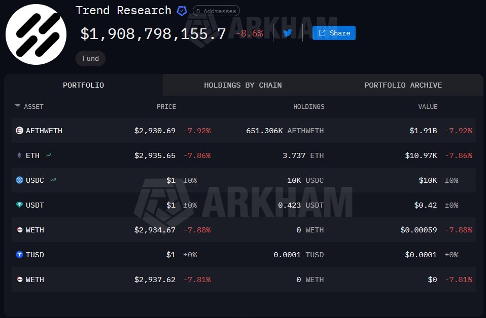 - 鲸鱼"0xFB7"进一步从#WinterMute购买了20,000 $ETH,价值5613万美元,现在持有100,130 $ETH,价值2.8379亿美元。