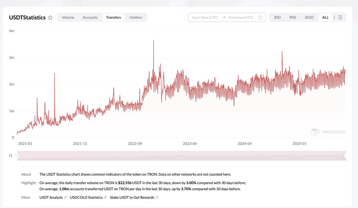 #Tron 上的活跃地址数量为2.48M,在所有链中排名#1。