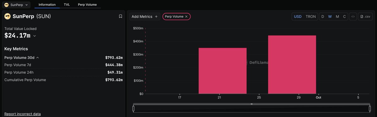 上周,@SunPerp_DEX在#Tron上的交易量达到$444.38M,环比增长27.24%。