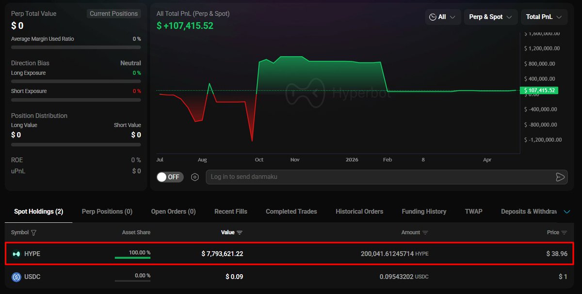 一头鲸鱼向#HyperLiqudi存入786万美元,并以39.29美元的价格购买了200,042枚$HYPE。