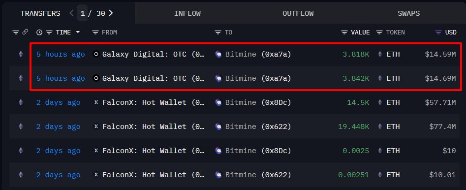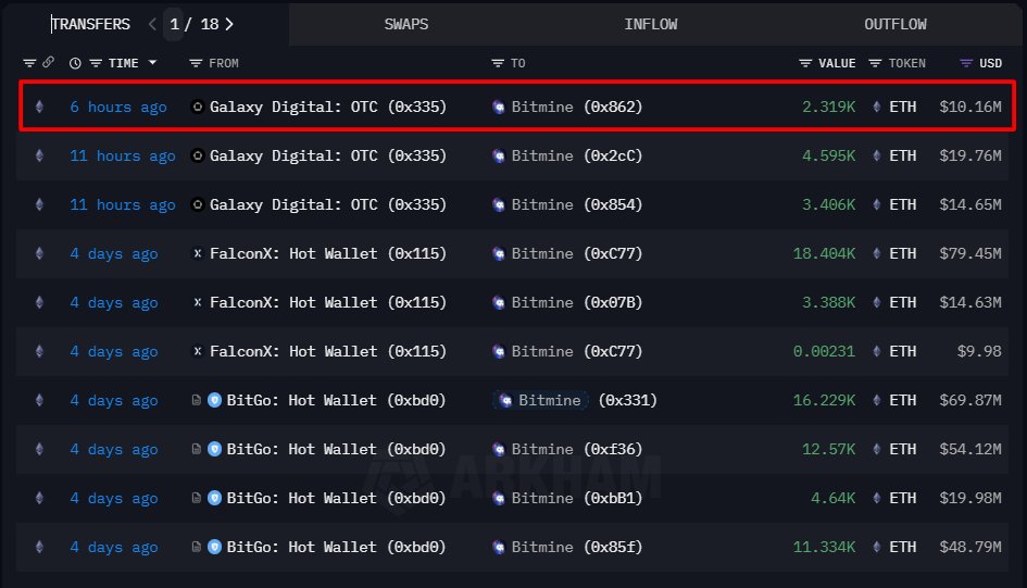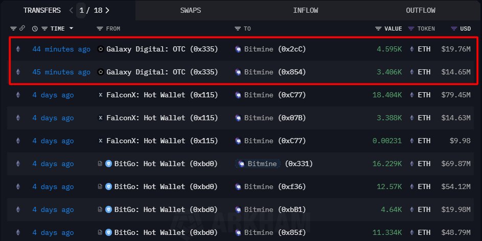 钱包"0x3c6"从#Galaxy收到了4,889 $ETH,价值2318万美元。