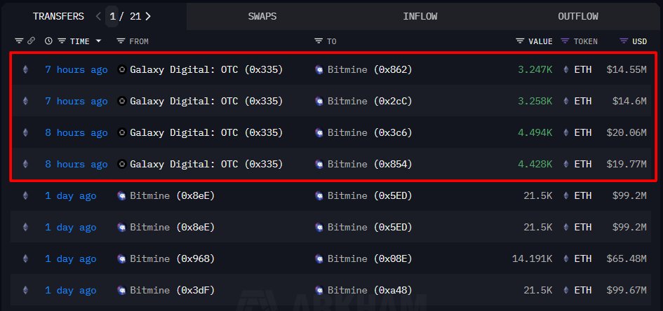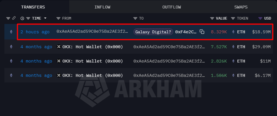 钱包"0x854"从#Galaxy收到了4,748 $ETH,价值2251万美元。