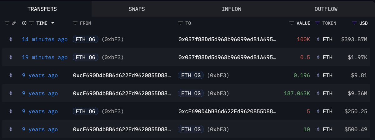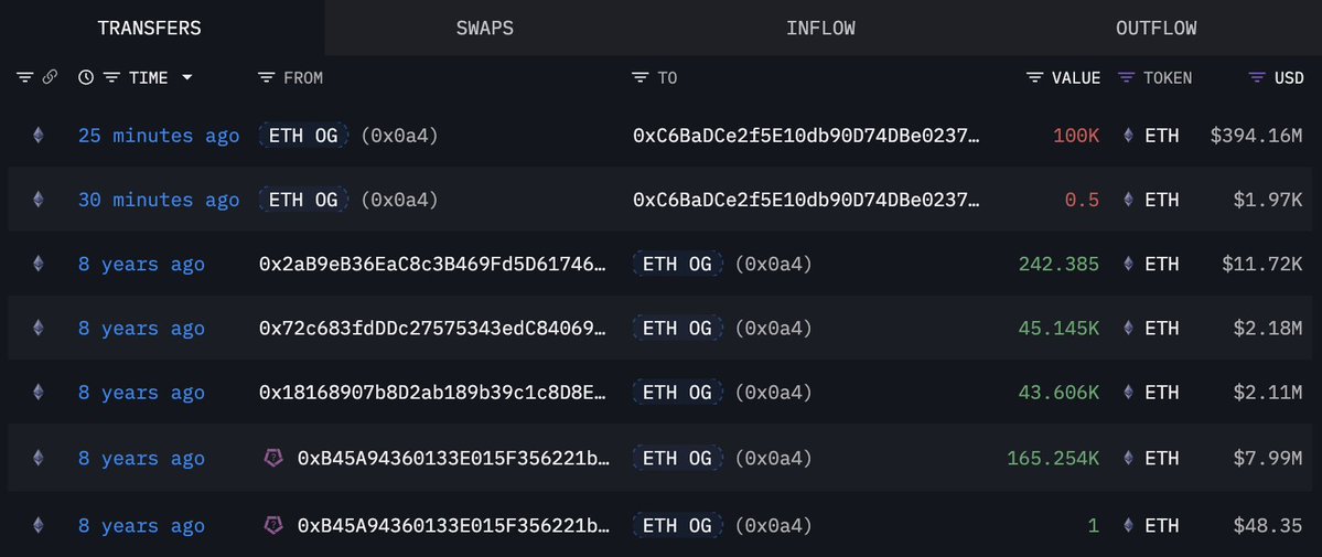 这个以太坊OG最初主要通过#Bitfinex获取他们的$ETH,目前8个钱包共持有736,316 $ETH(28.9亿美元)。