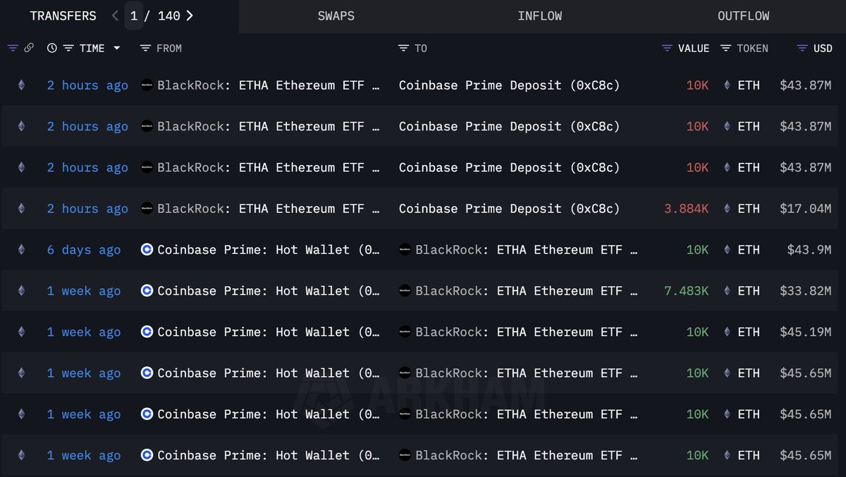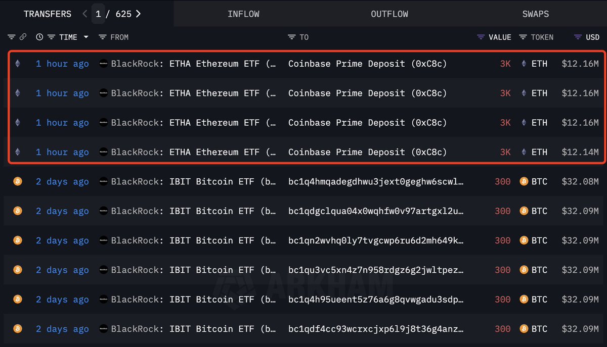 BlackRock刚刚在一小时前向#CoinbasePrime存入了12,000 $ETH($48.6M)。