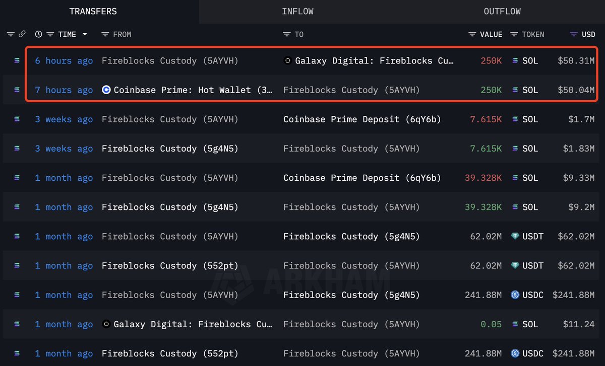 其中25万枚SOL(价值5000万美元)被转移到了#GalaxyDigital。