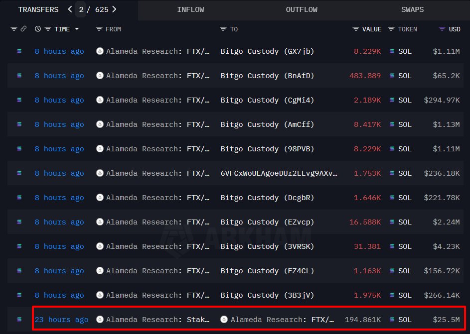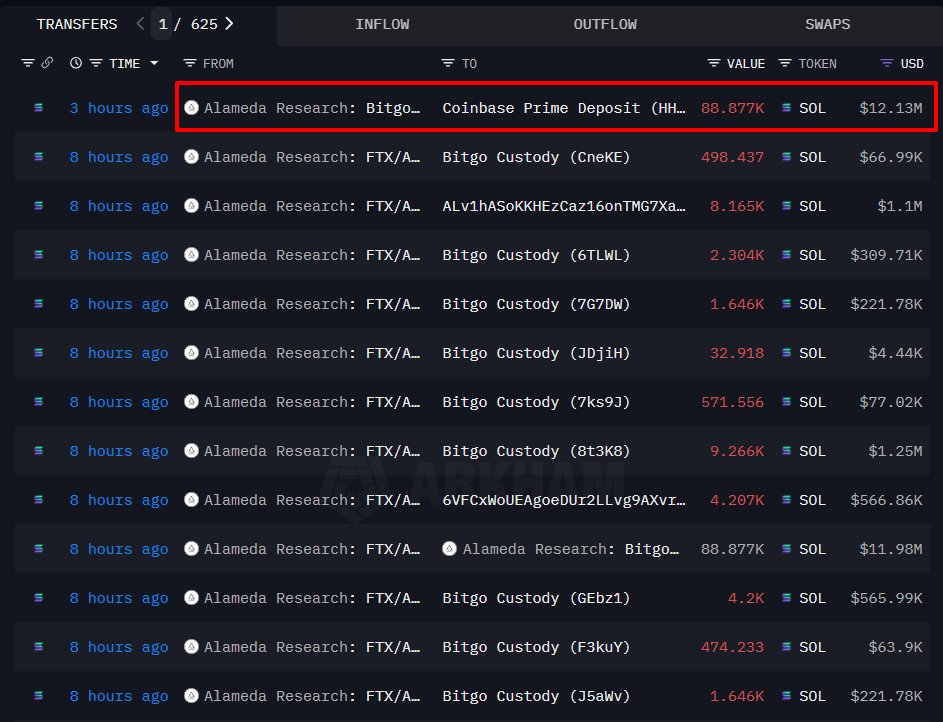 23小时前,Alameda Research解押了194,861 $SOL(2550万美元)并将资金转移到#Bitgo Custody。其中88,877 $SOL价值1213万美元在3小时前存入#CoinbasePrime。