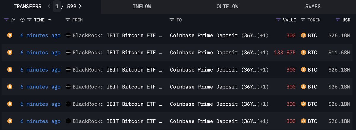 BlackRock刚刚向#CoinbasePrime存入了2,156 $BTC($186M)。