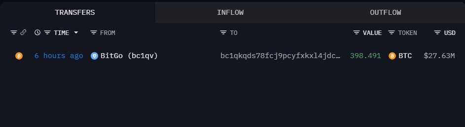 6个新创建的钱包(可能与Bitmine(@BitMNR)有关)在8小时前从#BitGo收到了95,789 $ETH(4.27亿美元)。