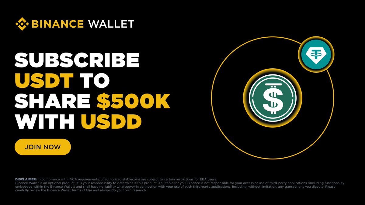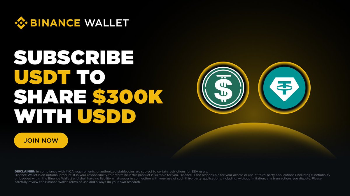 💰 在Yield+ USDD USDT策略上订阅USDT,与#BinanceWallet分享$300,000的USDD奖励!