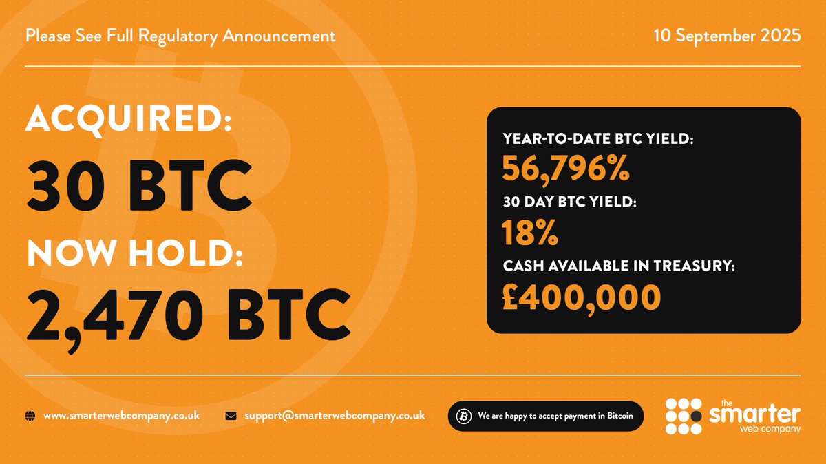 自那时起,Jesse已成为团队的关键成员,以多种方式为The Smarter Web Company及其比特币财务战略增添价值。The Smarter Web Company很高兴欢迎Jesse以全职身份继续担任我们比特币财务战略的重要角色,并专注于The Smarter Web Company的未来发展。
