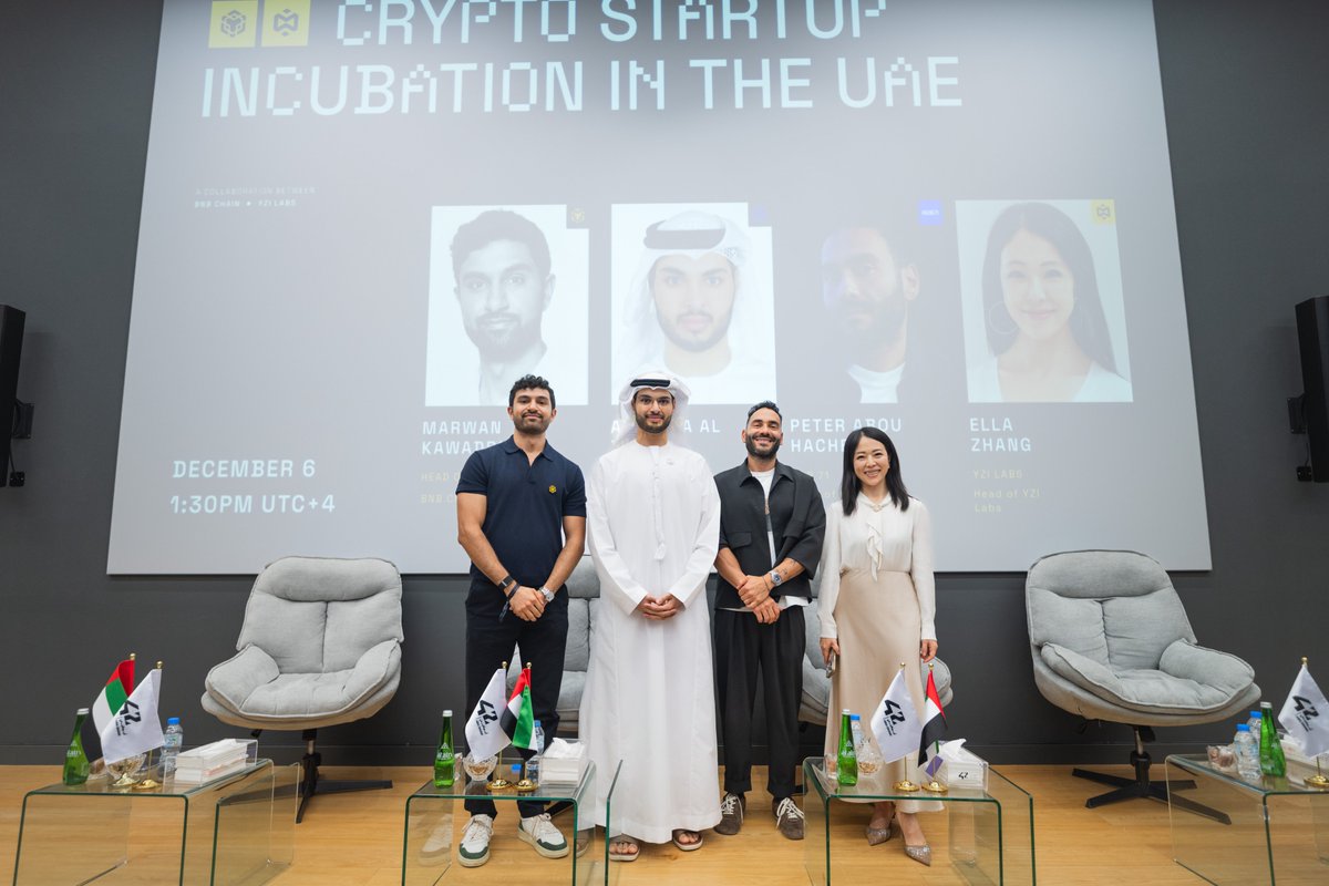 今天早些时候,我们在#BNBHack举办了一场小组讨论,探讨阿联酋🇦🇪加密初创企业的发展。感谢@ellazhang516、Peter Abou Hachem和@dhaheri_12分享你们的见解!