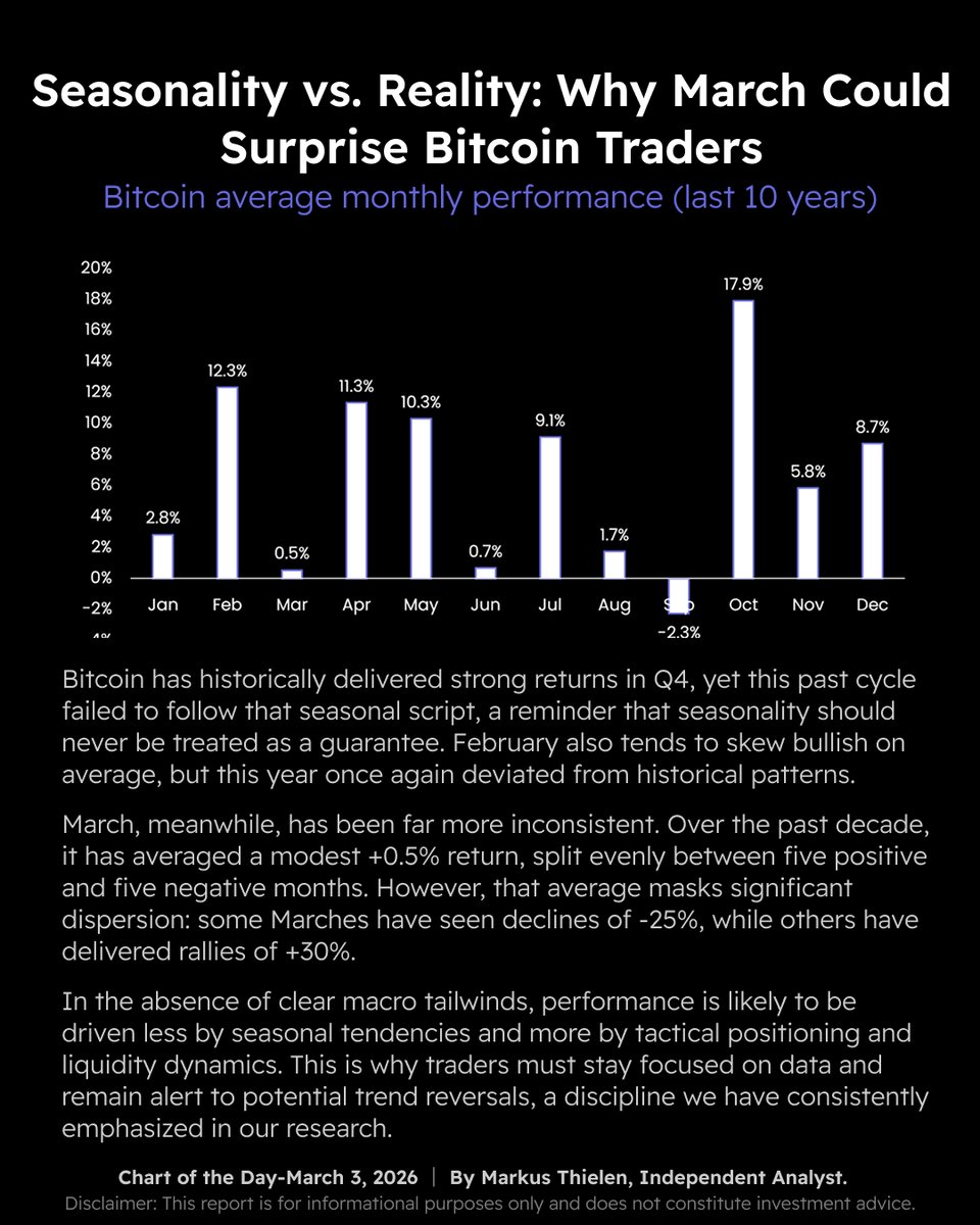 季节性 vs. 现实:为何三月可能让比特币交易者感到意外