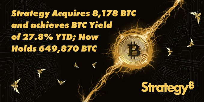 而 #SBET 收购了 39k $ETH(约 1.7667 亿美元),#MicroStrategy 又购买了 4,048 $BTC(约 4.49 亿美元)