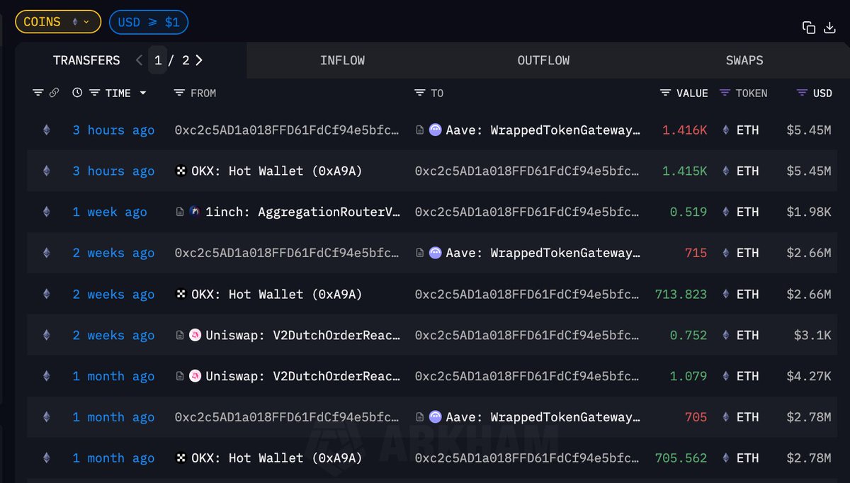 当然提出操作也可能只是没有卖掉此前的 ETH,但无论属于哪种情况,他都获得或保留了这部分利润;钱包地址