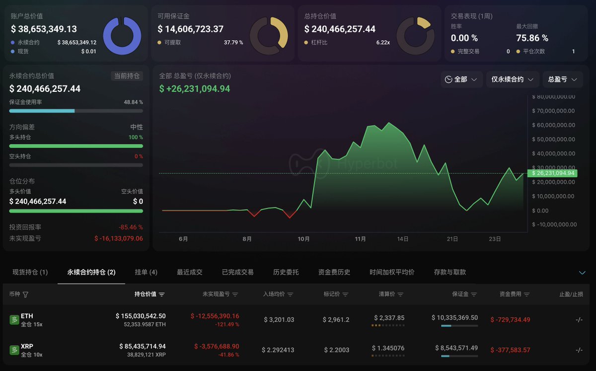 21 号时他的多单浮亏 $4400 万,现在浮亏 $1613 万,已经反弹回来 $2787 万了。