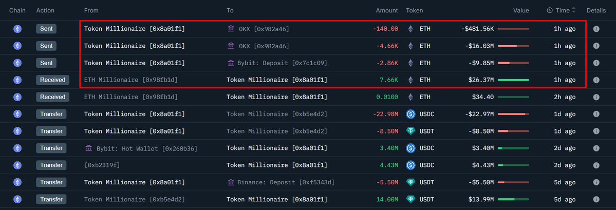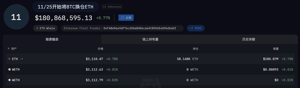 半小时前他向 #OKX 充值了 1000 ETH,价值 303 万美元;近一个月他已累计通过交易所和链上卖出 10500 ETH,总价值 3539 万美元,目前仍持有 110081 枚,总价值超 3.35 亿美元