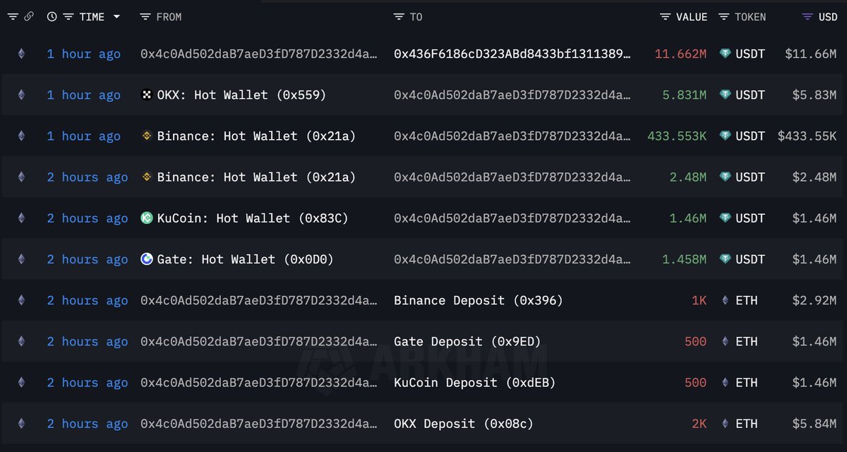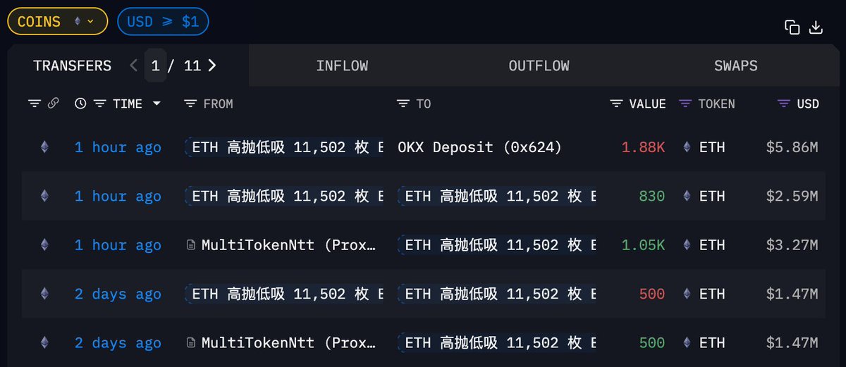 而他们此前在 10 月份应该是以 $3,896 的价格通过 OKX 等交易所卖出了 1 万枚的 ETH ($3896 万)。