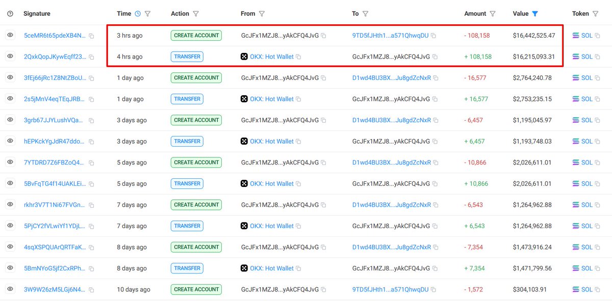 一个巨鲸地址在过去 2 小时里,从 #OKX 等交易所提出了 20,726 枚 ETH ($6250 万),价格 $3,015。