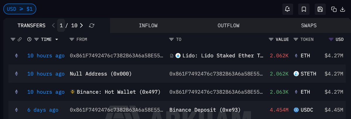 10 小时前从 #Binance 提出 2063 ETH,价值 427 万美元,提出价格 $2069.03