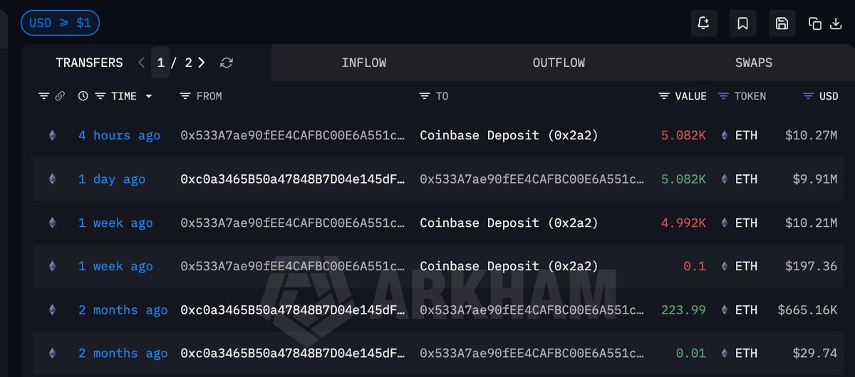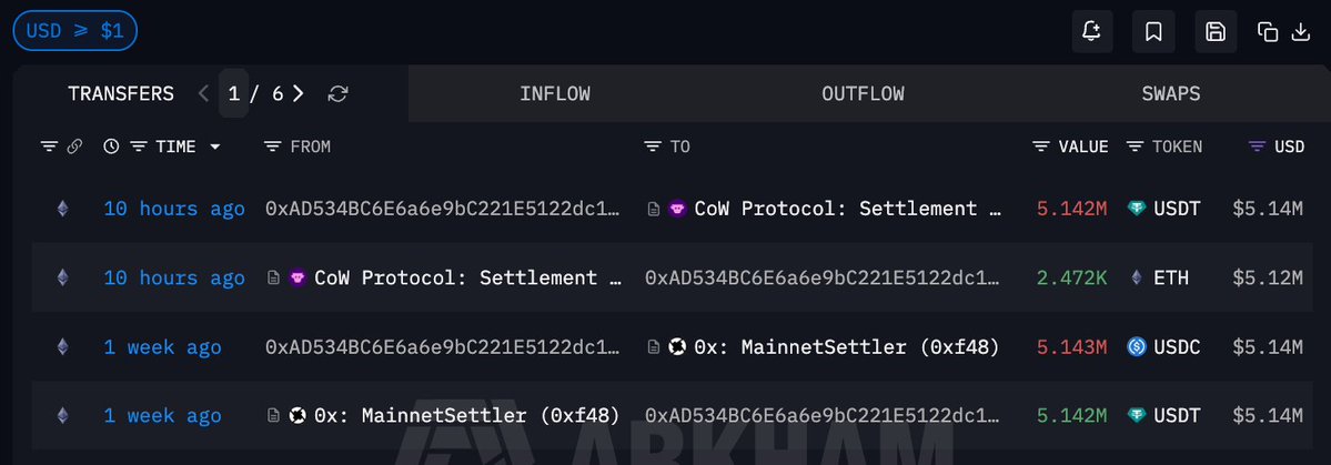10 小时前通过 Cowswap 在链上买入 2472 ETH,价值 512 万美元,成本 $2080.38