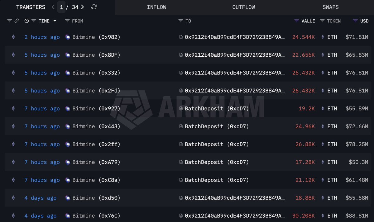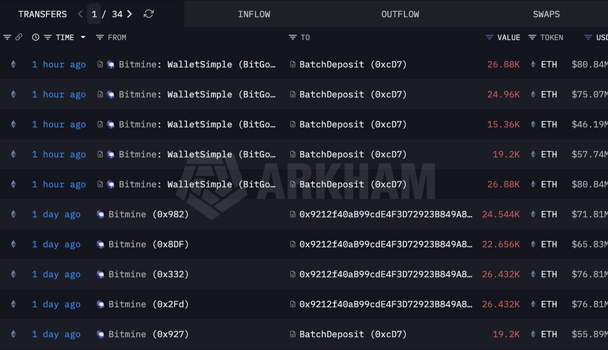 尽管亏损60亿美元,BitMine仍加倍押注以太坊