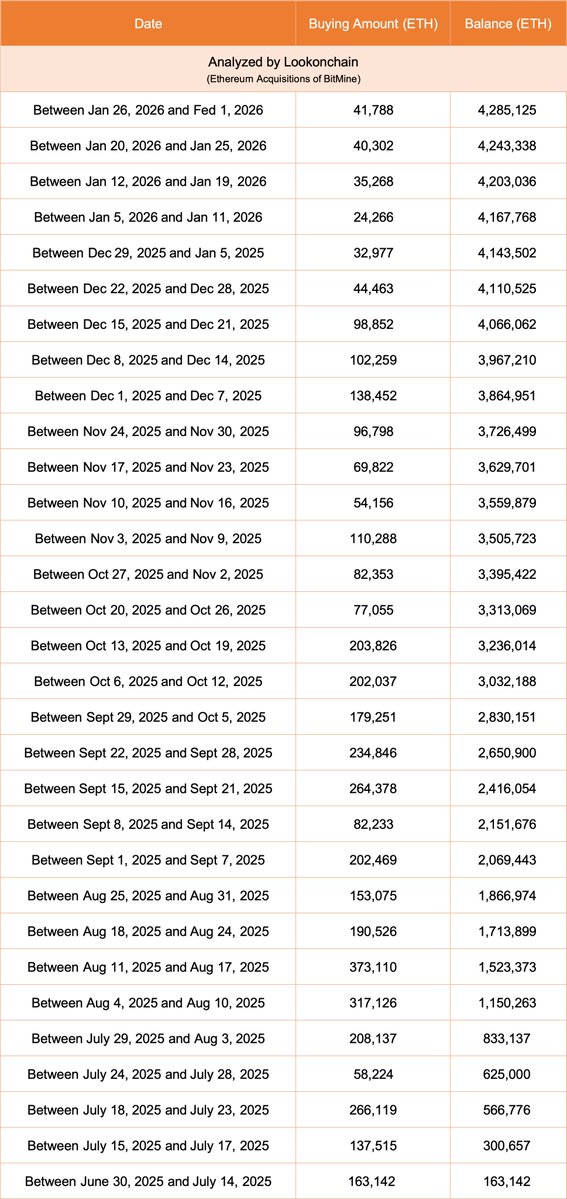 Bitmine(@BitMNR)上周又购买了202,469 $ETH(8.81亿美元),目前持有2,069,443 $ETH(90亿美元)。