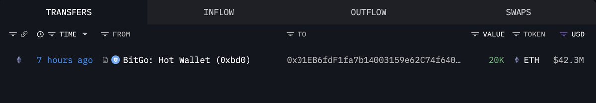 5个新创建的钱包从#BitGo和#Kraken收到了104,336 $ETH,价值4.16亿美元,可能属于#Bitmine。地址:- 0x0AF0Fb78Ef2e8E51C0c8f4AB8a8eDf8E78FC1D9C - 0x097269A65c0715842631590B975FC6abB975669e - 0xcd44FaCDa7B3bddF8cC823080681d85e7203af9e - 0xa168ceAdDA27B18f59e82FA196872552d1481FE5 - 0xF6265e20FBE65e85EDfae828aF7287f70f409e4f