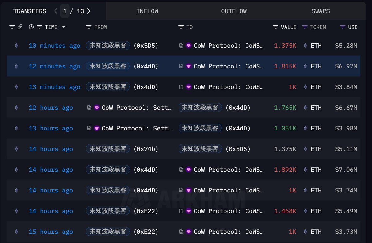 波段选手们被这行情搞得苦不堪言啊 多次高买低卖 $ETH 的波段苦手 0x248...87976 7 小时前几乎在短期最低点割肉抛售了 1531 枚 ETH(约 565 万美元),卖出价格 $3691,建仓成本 $4094,持仓两周后亏损 61.7 万美元结束