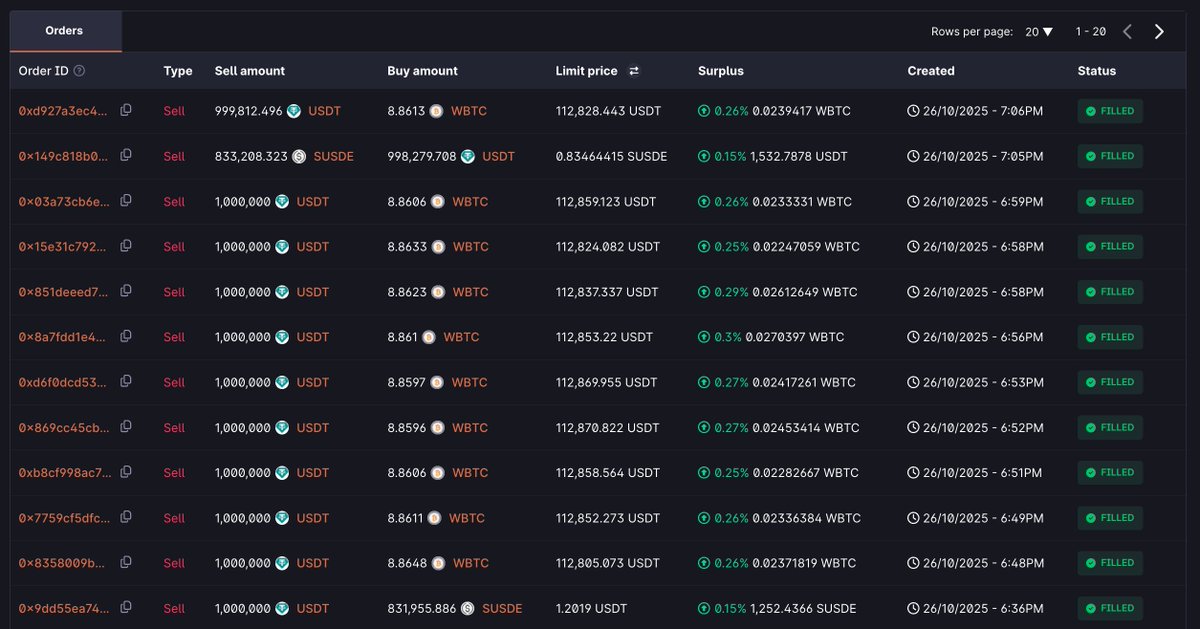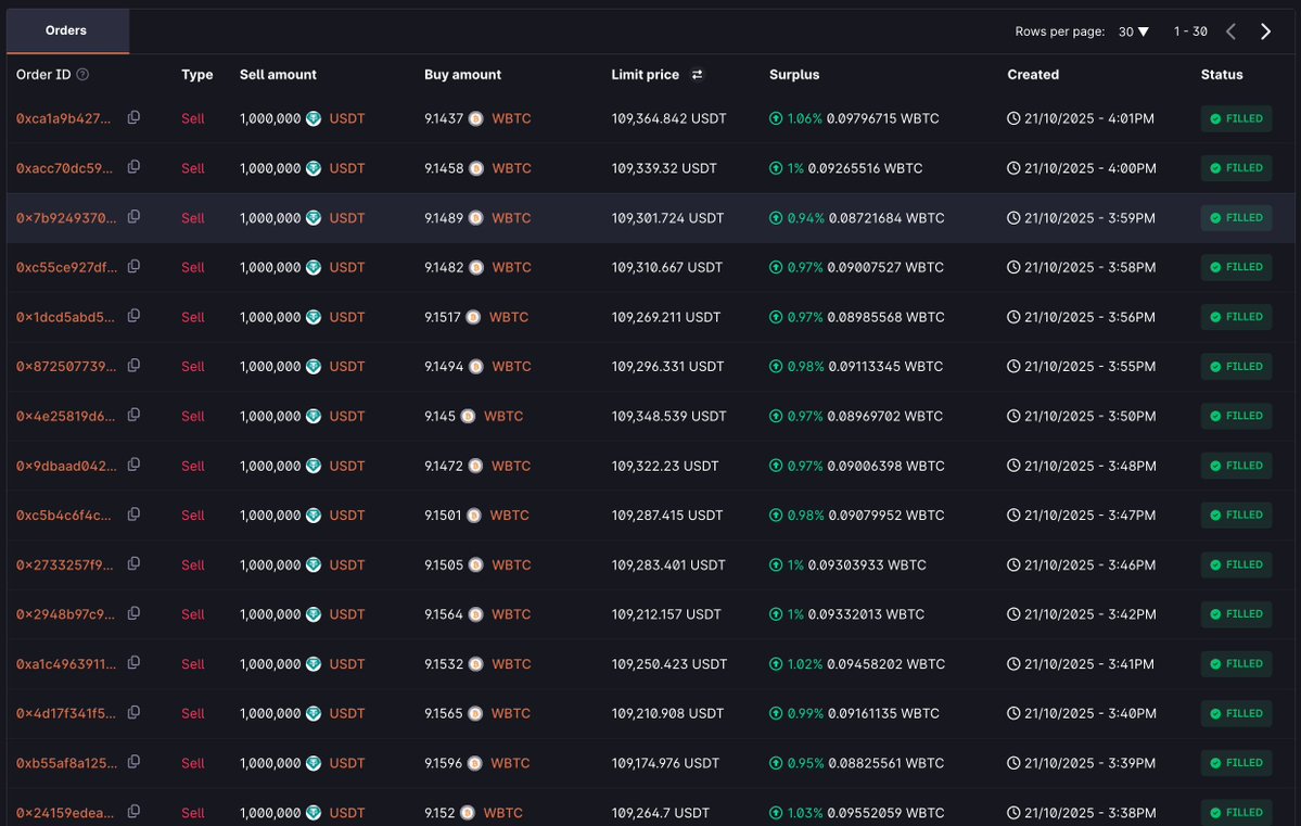 一小时前他花费 1000 万枚 USDT 再次买入 88.6143 WBTC,均价 $112846;加上 10.21 建仓的部分,已累计持有 271.73 WBTC((约 3000 万美元),均价 $110,403.69