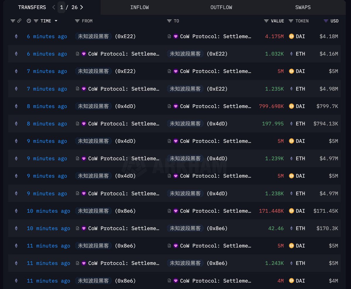 9 小时前他从 Aave 中借出 1100 万枚 USDT,随后在链上以均价 $4,396.5 买入 2502 ETH;目前共抵押 10,345 ETH 并借出 2008 万美元的稳定币,健康度 1.84