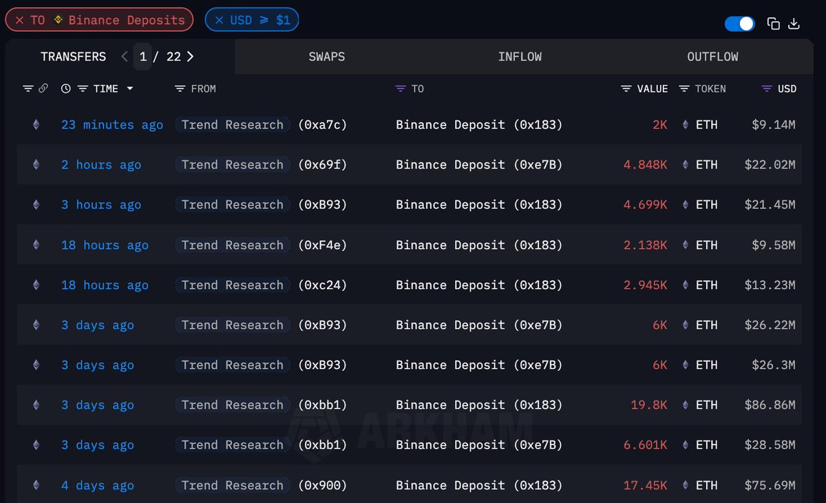 近两个月,他已累计向交易所转移 43025 枚 ETH,目前 Coinbase Prime 托管地址仍持有 57051 ETH(2.47 亿美元)