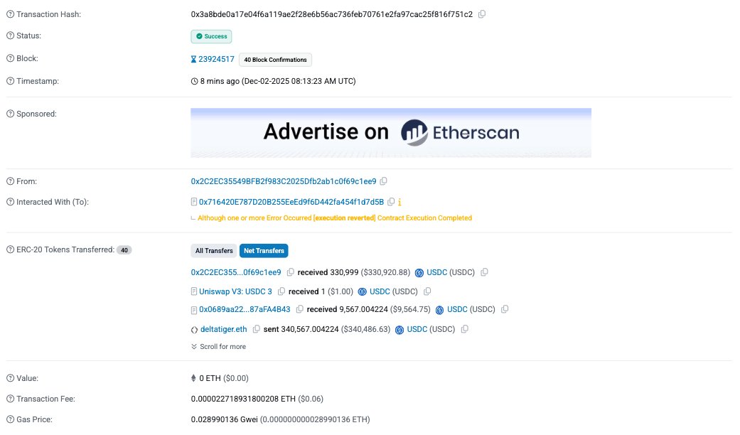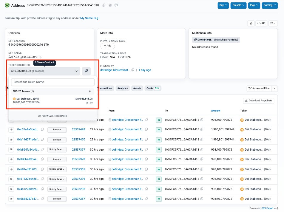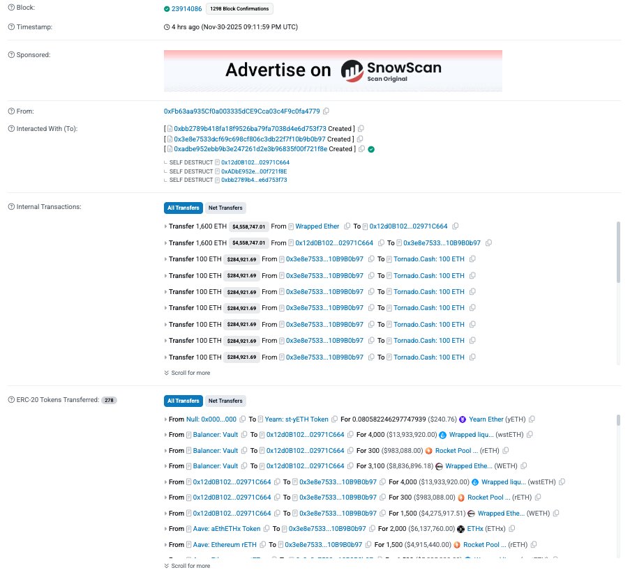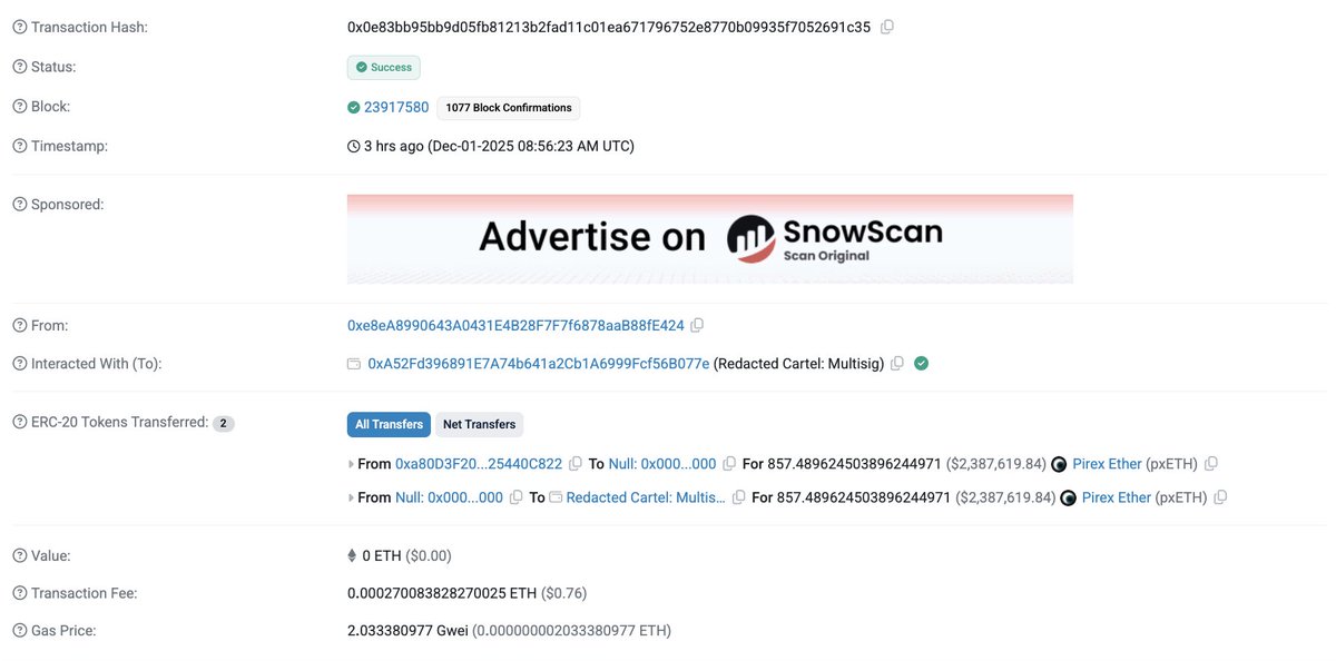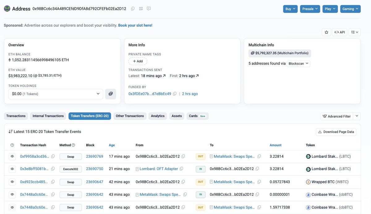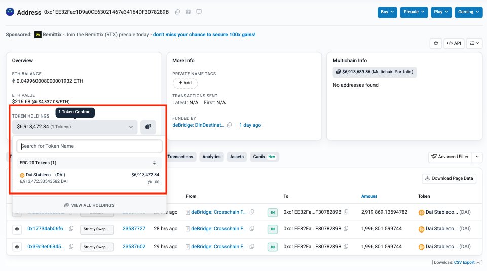 这些资金来源于2025年6月对@ResupplyFi的攻击,导致960万美元的损失。