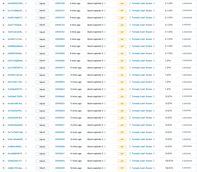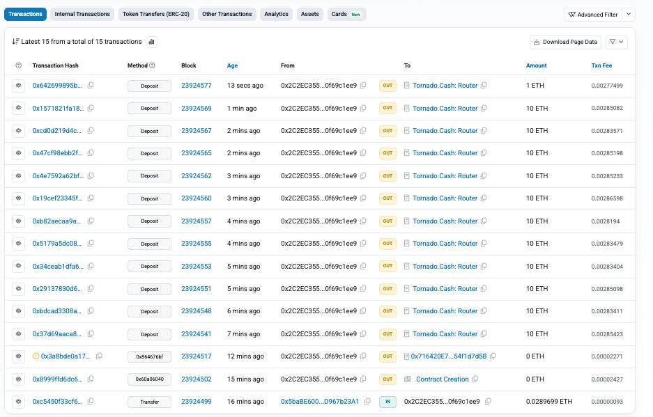 盗取者通过#TornadoCash洗钱$12.6M(4,100 $ETH),并保留了约$2M的流动资产。