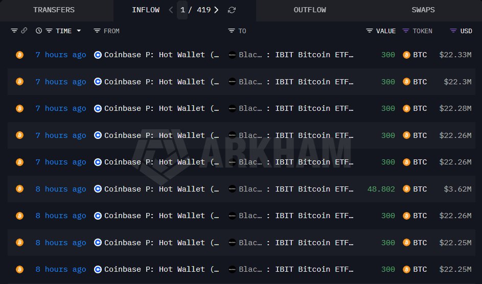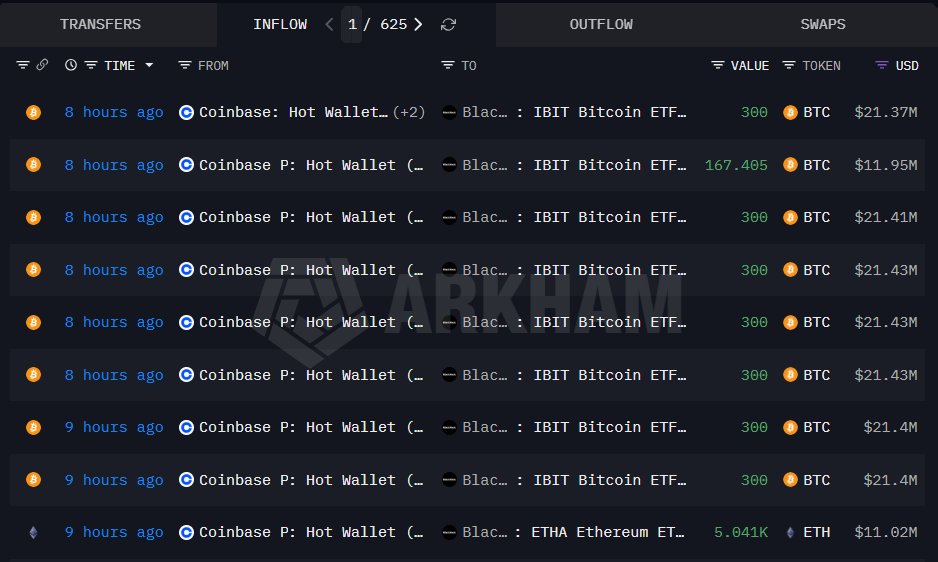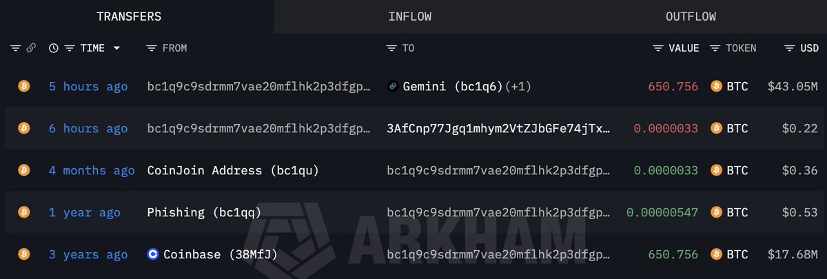 716 BTC从未知钱包转移至Coinbase
