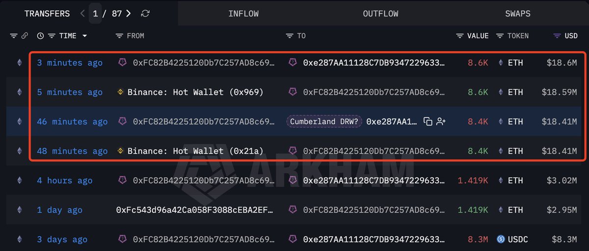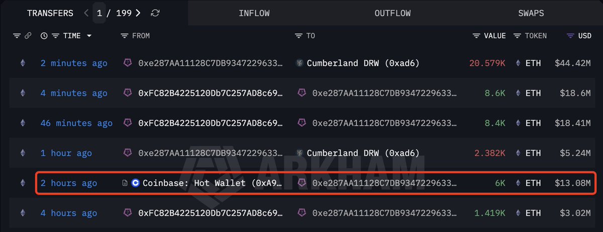 近两个月,他已累计向交易所转移 43025 枚 ETH,目前 Coinbase Prime 托管地址仍持有 57051 ETH(2.47 亿美元)
