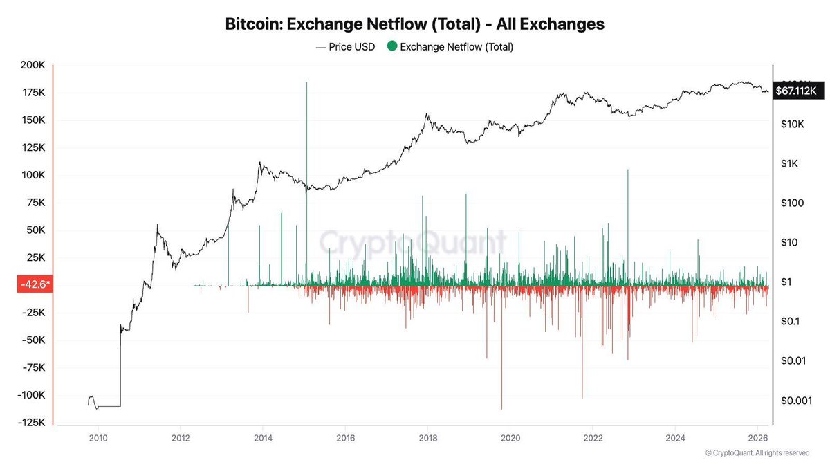 尽管近期价格疲软,#BTC 自2020年以来一直在持续离开交易所。