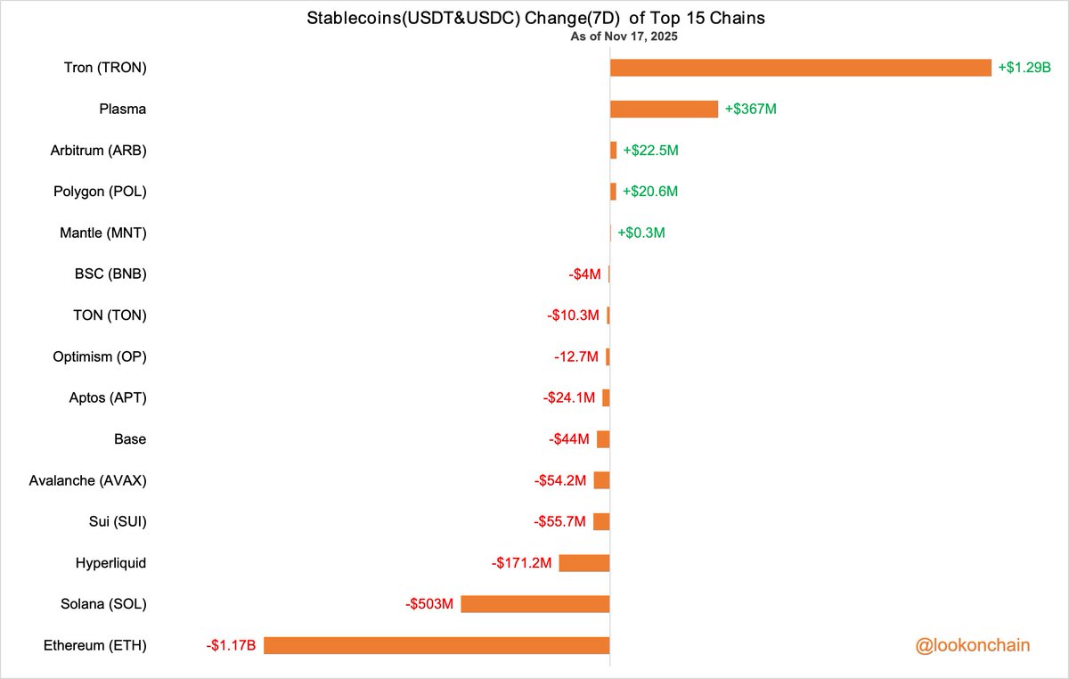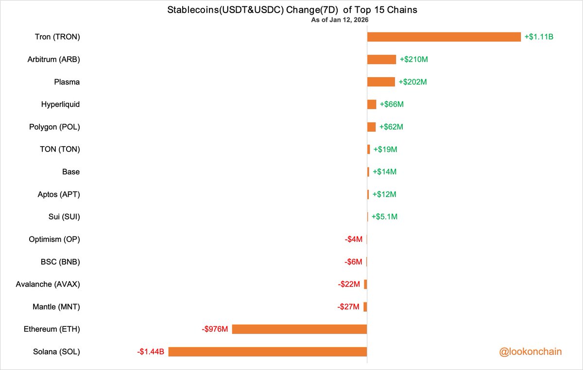 #Hyperliquid 上的稳定币(USDT&USDC)增加了9.679亿美元,而 #Arbitrum 上的稳定币(USDT&USDC)减少了4.978亿美元。
