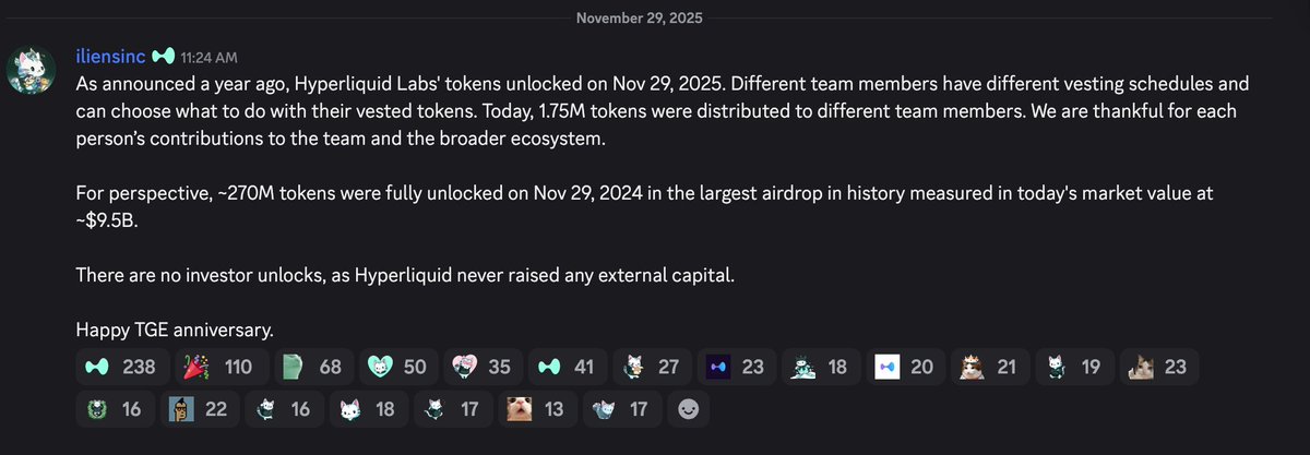#Hyperliquid 同时澄清完全没有投资者解锁部分。