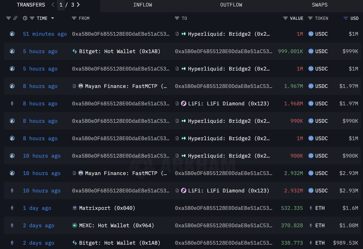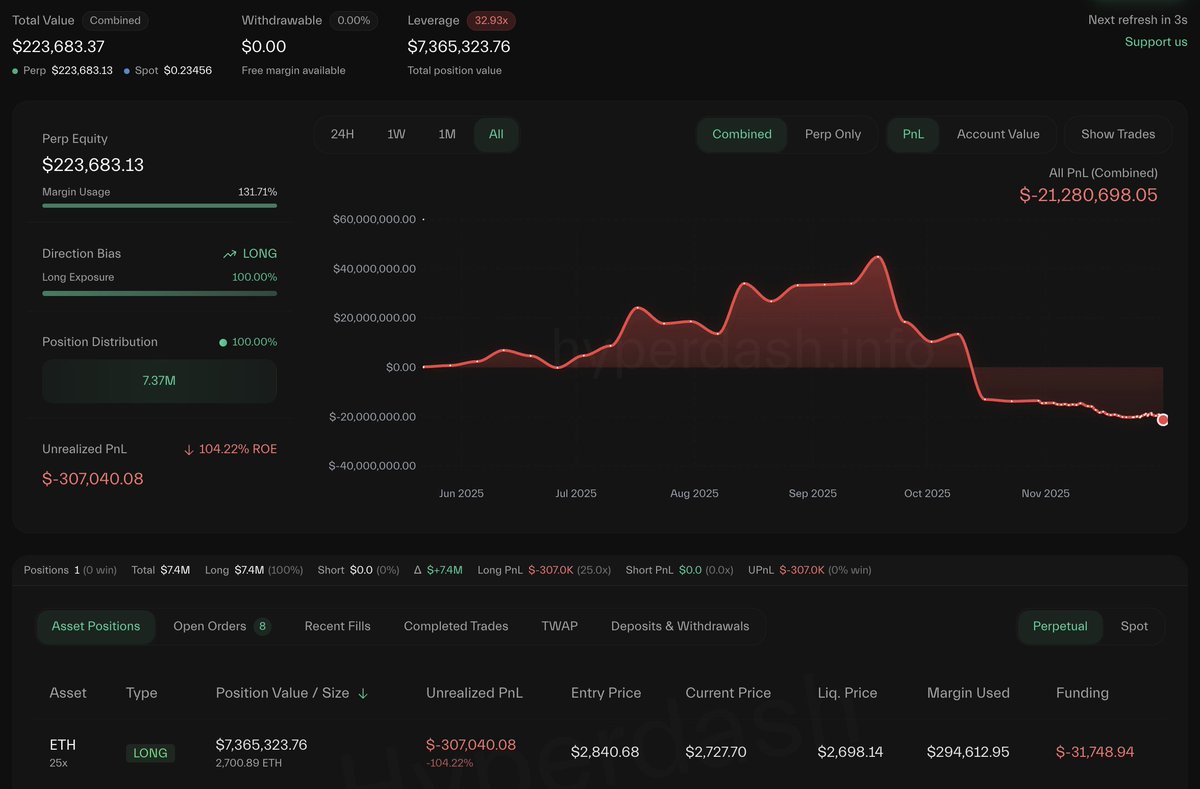 自8月20日起,他在#Hyperliquid上以0.0406的汇率卖出了35,991 $BTC($4.04B)并买入了886,371 $ETH($4.07B)。