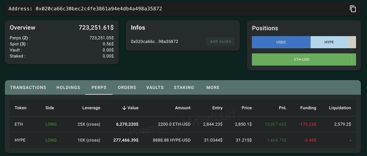 • 新钱包0x6988在#Hyperliquid上存入1.95M $USDC并开出了4,743 $ETH($18.71M)的25倍多头。