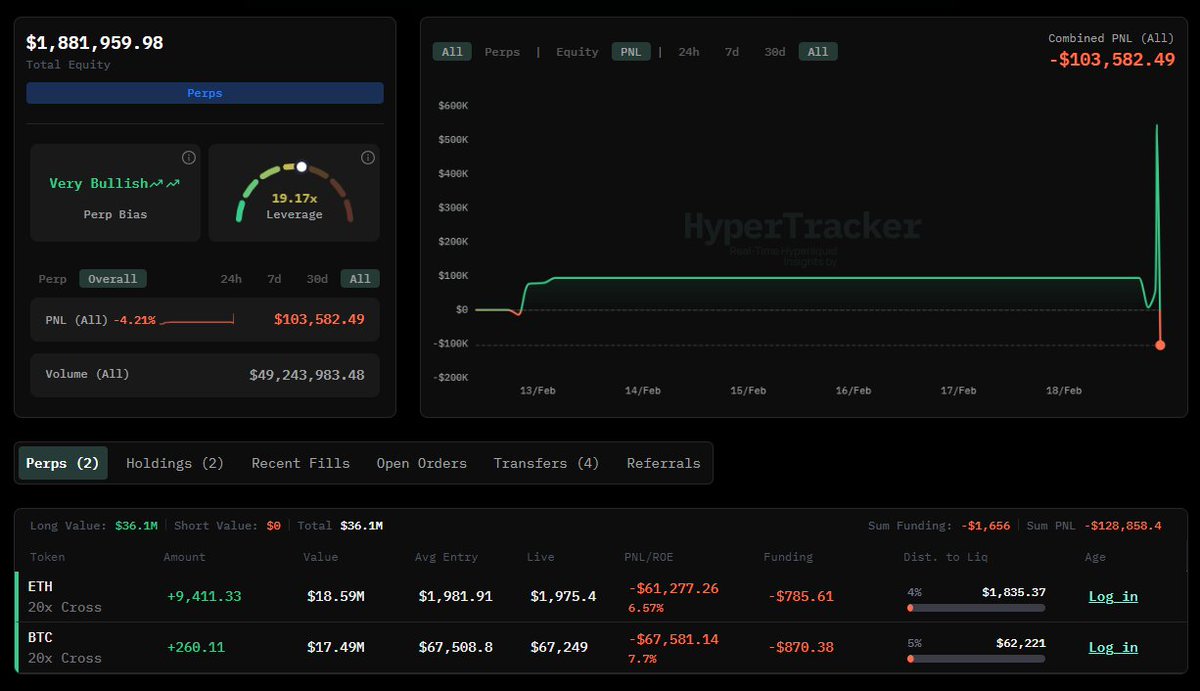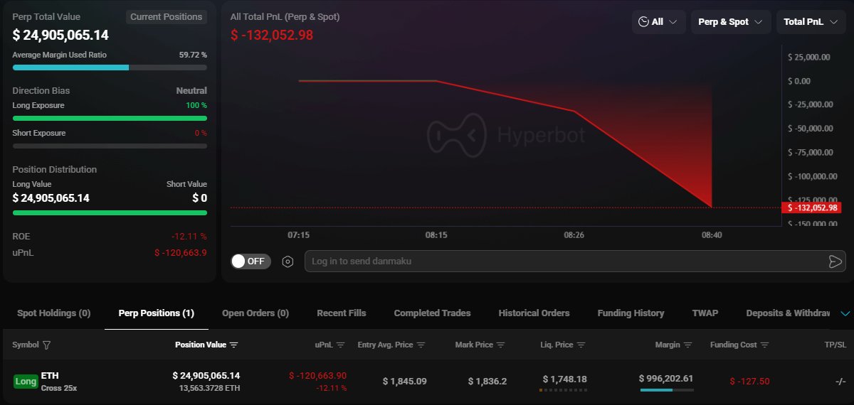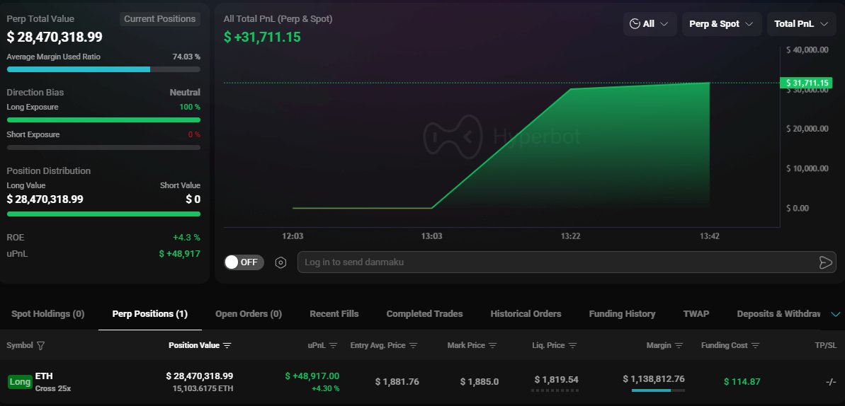 Machi (@machibigbrother) 向 #HyperLiquid 存入 $90,188 $USDC 以增加其 $ETH (25倍) 多头头寸。他部分被平仓,此前已关闭部分头寸,目前损失超过 $29.9M。