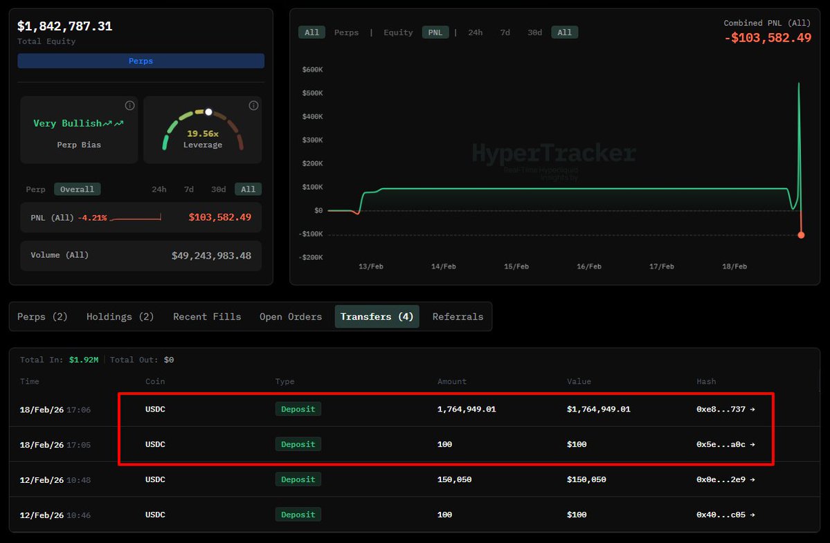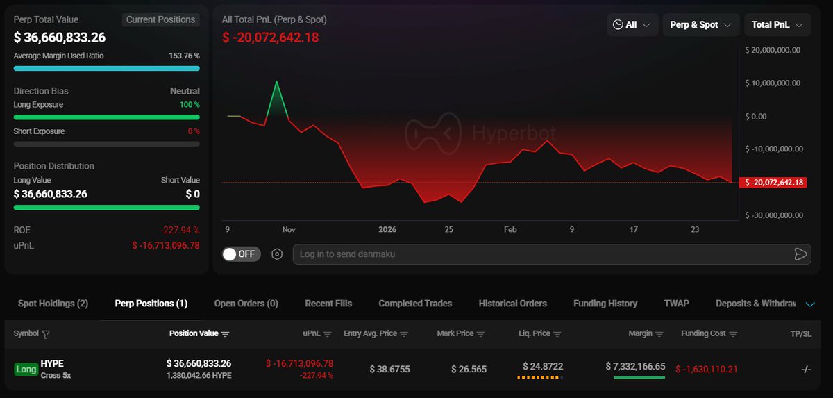 一条鲸鱼存入120万美元USDC到#HyperLiquid以避免其HYPE(5倍)多头头寸被清算。该头寸目前有1670万美元的未实现亏损,并损失160万美元的资金。