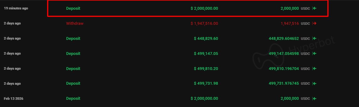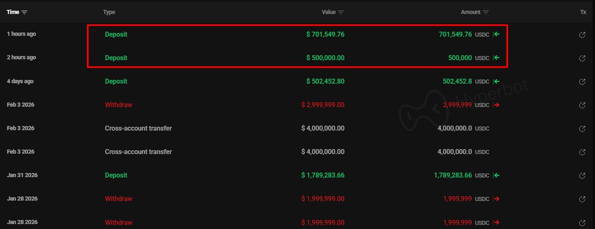 Machi (@machibigbrother) 向 #HyperLiquid 存入 $100,000 $USDC 以增加其 ETH(25倍)多头仓位。目前,他的浮动利润已超过 $200K。