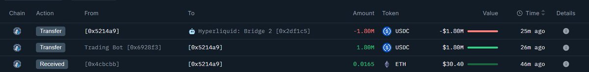 Machi (@machibigbrother) 存入 $210K $USDC 到 #HyperLiquid 以增加他的 $ETH (25倍) 多头仓位。