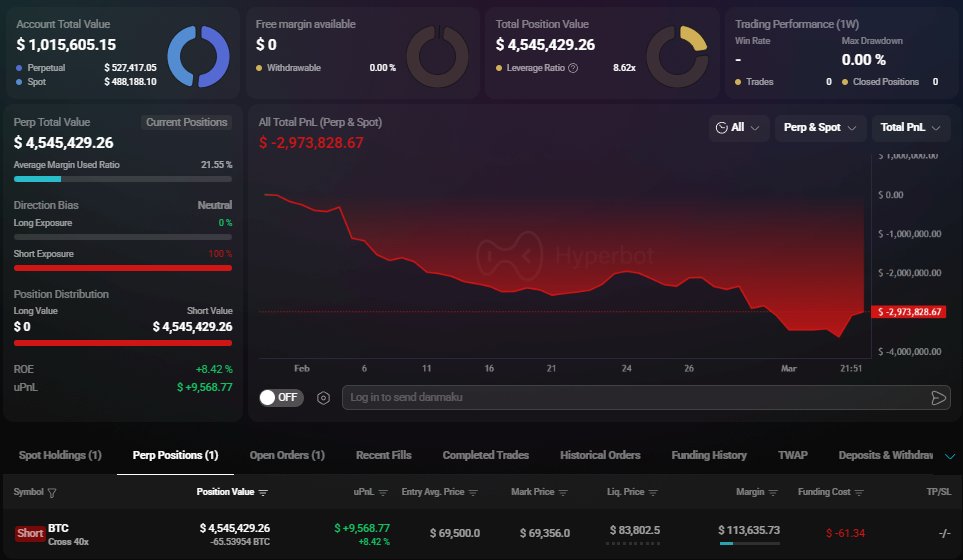 另一方面,该鲸鱼以20倍杠杆开立了一个小的$BRENTOIL空头仓位。